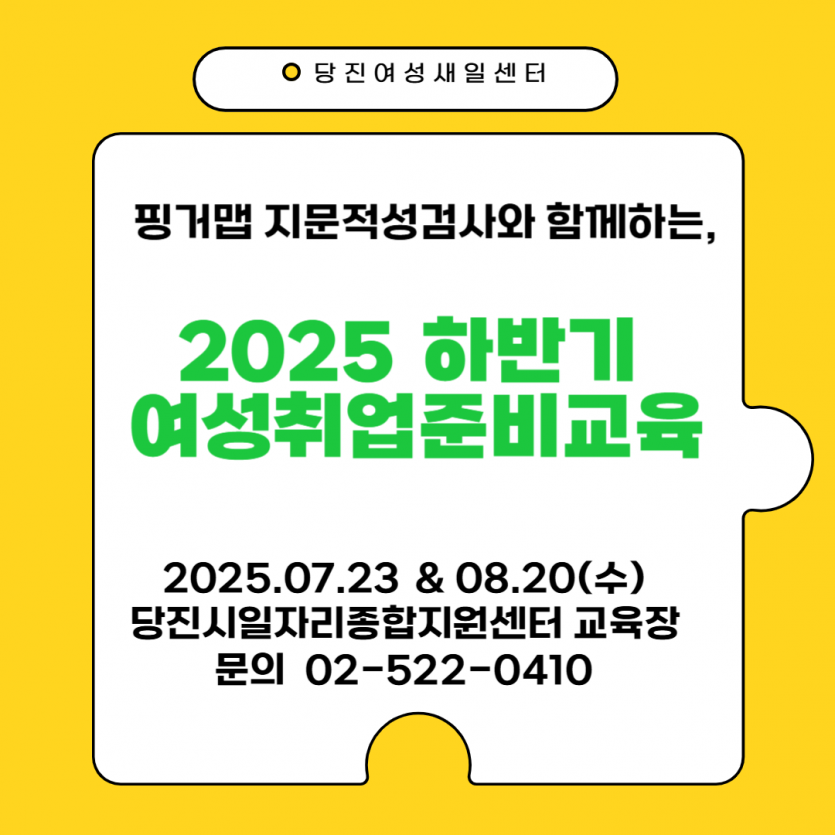 당진시에 거주하시는 취업을 준비하는 여성분들의 많은 관심과 참여 바랍니다.