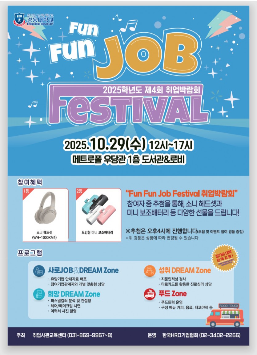 취업사관학교가 주최하고 한국HRD기업협회가 주관하는 Fun Fun JOB Festival 제4회 취업박람회 오는 10월29일(수)